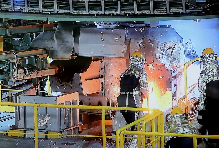 포스코의 전기용융로(ESF) 시험설비에서 쇳물이 출선되고 있는 모습<포스코홀딩스> 한편 철강사업 본원 경쟁력을 회복하기 위해 포스코는 수소환원제철 기술 확보에 매진하고 있다.