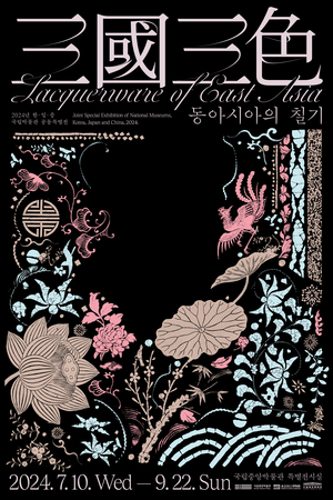 나전 칠 십장생무늬 이층 농(사진 국립중앙박물관) 이번 전시의 주제는 ‘칠기(漆器)’로 선정한 이유는 삼국 모두 공통으로 옻나무에서 채취한 천연수액(칠액漆液 등)을 가공한 도료를 사용하여 다양한 칠기를 제작했기 때문이다. 옻나무는 세계 여러 곳에 자생하는데,동아시아에서는 흔히 ‘옻독’의 주성분인 우루시올 성분이 들어간 옻나무 수액을 사용했다. 삼국의 이 칠기는 습기와 병충해에 강하며 쉽게 부패하지 않아 땅속에 묻혀도 천 년을 넘게 견딘다.칠기는 생활용품으로도,수준 높은 공예품으로도 널리 만들어졌다. 몇천 년 동안의 칠기술을 집약한 삼국의 칠기는 단연 시간의 예술품으로서 장인의 인내와 솜씨를 한눈에 보여준다. 이번 전시는 각국이 가려 뽑은 칠공예품을 각각 15건 내외로 구성,다채로운 아름다움과 개성을 자랑하는 칠기 총 46건을 전시한다.조칠 구름무늬 탁자(사진 국립중앙박물관) 한국은 진주빛이 영롱한 자재를 붙여 꾸민 ‘나전칠기’,일본은 금가루를 정교하게 가공하여 칠면에 뿌려 장식한 ‘마키에칠기’,중국은 겹겹이 칠한 칠 층에 섬세하게 무늬를 새긴 ‘조칠기’가 대표적이다.이번 전시에서 만나볼 수 있는 중국 칠기는 명대 척서 기법의 ‘조칠 구름무늬 탁자’,청대 건륭제 시기의 척홍 기법 ‘조칠 산수 인물무늬 운반 상자’ 등이 있다. 일본은 도기다시 마키에 기법을 사용한 ‘마키에 칠 연못무늬 경전 상자’를 비롯,유럽으로 수출된 남만칠기,차 문화에 관련된 칠기 및 소유자의 신분과 취향을 드러내는 인롱 등을 출품했다.우리나라 출품작으로는 고려 시대 나전칠기 기법을 볼 수 있는 ‘나전 칠 모란 넝쿨무늬 경전 상자’와,고 이건희 회장의 기증품인 ‘나전 칠 십장생무늬 이층 농’ 등을 들 수 있다.‘삼국삼색-동아시아의 칠기’ 포스터(사진 국립중앙박물관) Info