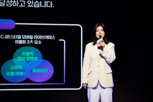 김지현 CJ ENM 커머스 부문 성장추진실장이 CJ온스타일 모바일 라이브 방송의 차별화 요소를 소개하고 있다. [CJ ENM] CJ온스타일은 새 모바일 라이브쇼 프로그램들이 ‘블록버스터 효과’를 일으킬 수 있다고 본다. 스케일 큰 블록버스터가 개봉하면 극장의 다른 영화 관객도 전반적으로 늘어나듯,스타 MC를 내세운 콘텐츠들이 커머스 전반의 매출을 올릴 것이라는 기대다.