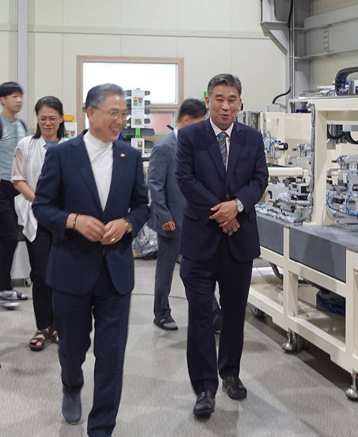 23일 최승재 중소기업 옴부즈만(오른쪽)이 대전 대덕테크노밸리 ㈜나노하이테크를 방문해 회사 관계자들과 함께 공장을 둘러보고 있다. <중소기업 옴부즈만> 최승재 중소기업 옴부즈만이 취임 사흘만에 첫 현장간담회를 가졌다. 최 옴부즈만은 드론산업과 소방산업 분야의 애로사항을 듣고 지속적인 관심을 약속했다.