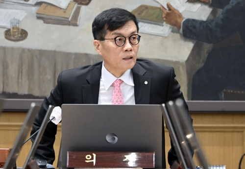 한국은행 금융통화위원회 주재하는 이창용 총재. [사진 출처 = 연합뉴스] 한국은행이 전날 기준금리를 3.50%로 동결한다고 발표하자,투자자들이 투자 전략 재정비로 분주하다.