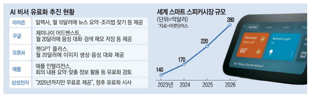 하지만 생성형 AI가 속속 등장하면서 음성 비서 서비스의 유료화에 탄력이 붙었다. 현재 빅테크 기업 가운데 음성 비서 유료화를 확정한 곳은 구글이다. 구글은 실시간 대화가 가능한 '제미나이 라이브'를 공개하면서 이를 월 20달러의 제미나이 어드밴스트 고객에게만 허용한다고 발표했다. 제미나이 어드밴스트 사용자는 자신이 갖고 있는 대규모 데이터를 제미나이에서 처리할 수 있다. 예를 들어 이메일로 받은 미팅 일정을 확인해 구글 캘린더에 자동으로 저장할 수 있다. 제미나이 라이브는 사실상 음성 비서인 구글 어시스턴트의 업그레이드 버전인 셈이다.