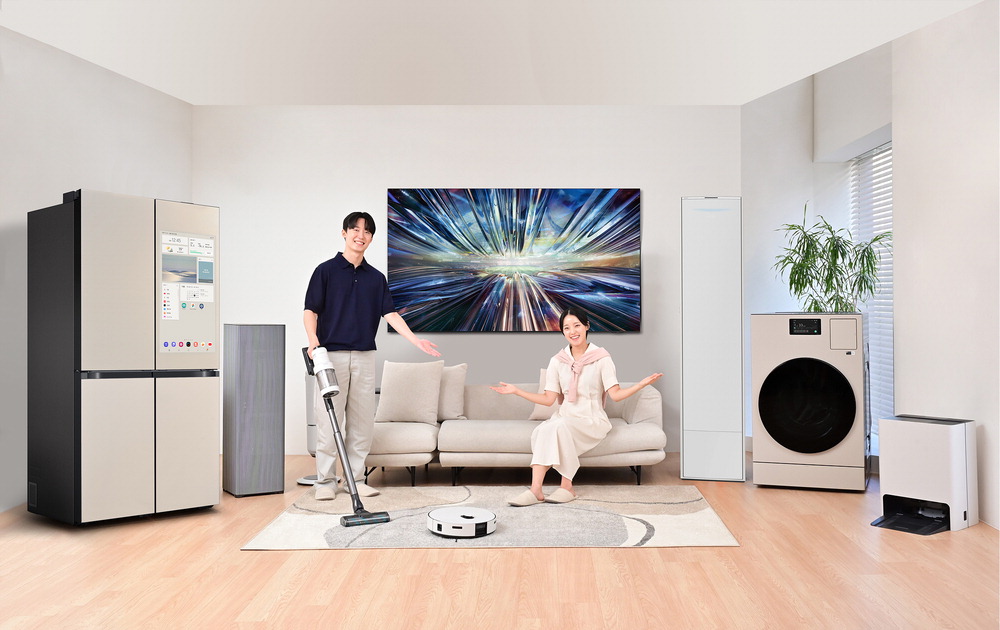 삼성 AI가전 패키지 고객 절반은 2030세대 삼성전자는 2개 이상 인공지능(AI) 가전으로 구성된 패키지를 구매한 고객의 절반 이상이 2030세대라고 29일 밝혔다. 삼성전자는 이 같은 인기에 힘입어 8월 말 종료하려 했던 '삼성전자 AI 세일 페스타'를 다음달 8일까지 연장하기로 했다. 사진은 삼성전자 모델들이 AI가전 패키지 제품을 소개하고 있는 모습. 삼성전자