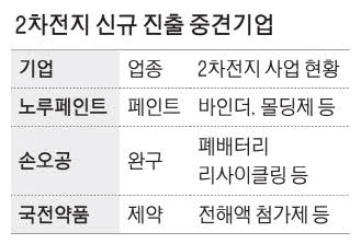 제약 회사도 예외는 아니다. 국전약품은 원료의약품을 생산하는 기업인데 2차전지 사업에 도전장을 냈다. 현재 유기발광다이오드(OLED) 소재 사업을 하고 있는 가운데 반도체 소재와 2차전지 전해액 첨가제로 영역을 확대하기로 했다.