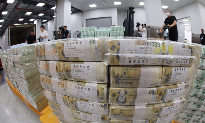 5일 서울 중구 한국은행 화폐수납장에서 관계자들이 추석 화폐 공급을 하고 있다. [사진출처 = 연합뉴스] 올해 추석 연휴를 앞두고 경기 상황에 대해서 지난해보다 나아지지 않았다고 응답한 기업이 약 94% 로 나타났다.