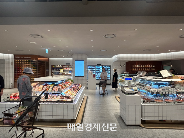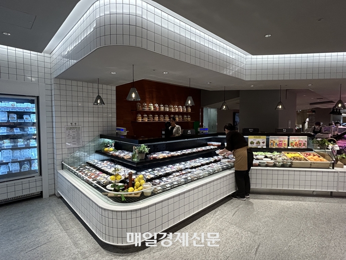 현대백화점 중동점 ‘그리팅 스토어’. 매장에선 맞춤형 식단에 맞는 반찬류도 판매하고 있다. [변덕호 기자] 현대백화점과 현대그린푸드는 식품관 차별화를 위해 그리팅 스토어를 론칭했다고 밝혔다. 백화점 식품관 경쟁이 그 어느 때보다 뜨거운 상황에서 콘텐츠로 차별화를 두어 경쟁력을 강화하겠다는 취지다.현대그린푸드 관계자는 “가격으로 승부를 보는 시대는 지났다. 이제는 가치 소비가 더 중요한 시대”라며 “그리팅 스토어는 현대백화점 식품관만이 갖고 있는 유일무이한 콘텐츠로 우리의 무기가 될 것”이라고 말했다.그리팅 스토어가 ‘셀프 메디케이션’ 시장이 커짐에 따른 성장 기폭제가 될 것이라는 설명도 덧붙였다.이 관계자는 “일본이나 미국의 일부 매장에는 영양사가 상주하는 경우도 있다. 이처럼 해외에서는 셀프 메디케이션이 생활밀착형인데 우리나라는 아직 그렇지 않다”며 “그러나 우리가 선도입해서 시장을 키워나갈 수 있을 것”이라고 말했다.한편 현대그린푸드는 이번 중동점 그리팅 스토어를 시작을 판교점을 비롯한 전국 주요 점포에 그리팅 버틀러 서비스를 점차 확대 도입할 예정이다.또한 유선 및 온라인을 활용한 비대면 영양 상담서비스도 개발해 집에서도 간편하게 개인 맞춤 식단을 제공받을 수 있도록 할 계획이다.