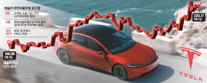 이같이 FSD와 로보택시에 대한 기대감이 반영되면서 테슬라 주가는 지난달 29일 206.28달러에서 5일에는 230.17달러까지 단기간에 11% 급등했다.