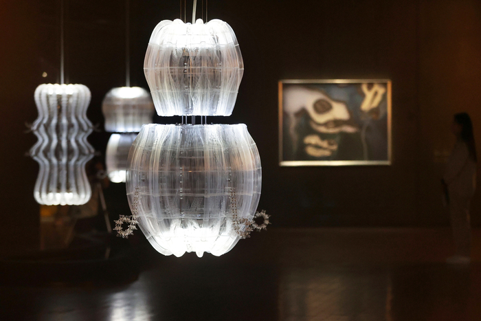 아니카 이의 개인전이 열리고 있는 서울 용산구 한남동 리움미술관 전경. 천장에 매달려 있는 작품들은 방산충을 모티브로 한 키네틱 아트 연작이다. 연합뉴스