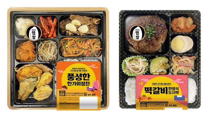 이마트24는 추석을 앞두고 올해 수확한 햅쌀을 적용한 명절도시락 2종을 선보인다. ‘풍성한 한가위 정찬도시락’(7900원)과 ‘한정식 떡갈비 정찬도시락’(5900원)을 판매한다.