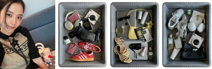 (좌) 블랙핑크 지수가 가방에 키링을 달고 있다 / 사진=지수 인스타그램 캡쳐 (우) 공항 보안 검색대 트레이 꾸미기 유행 / 사진= 틱톡 becwatkinson 캡처 블랙핑크 지수,한소희,뉴진스 민지 등도 가방에 키링을 달아 백꾸 유행을 증명했다. MZ세대 사이에서의 꾸미기 유행은 단순 가방에 그치지 않는다. 백꾸를 비롯해 폰꾸(휴대폰 케이스 꾸미기),신꾸(신발 꾸미기),화꾸(화장품 용기 꾸미기),팟꾸(에어팟 꾸미기),트꾸(트레이 꾸미기) 등 대상을 가리지 않고 자신을 표현할 수 있는 물품 전체로 퍼져나갔다.똑같은 물건이라도 자신만의 개성을 표현할 수 있는 장식을 달아 하나뿐인 ‘내 것’으로 재탄생하는 것이다. 꾸미기 열풍이 부는 가운데 ‘카꾸’까지 등장했다. 이번 꾸미기 대상은 카메라다.“카꾸” 그게 뭔데,어떻게 하는 건데