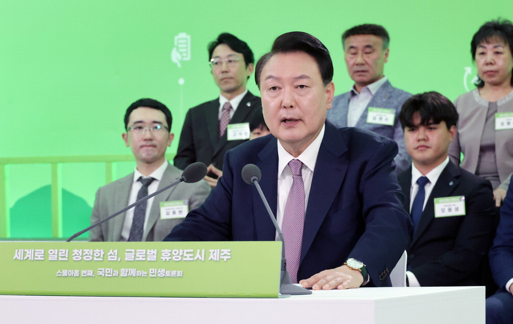 취임한 후 처음 제주를 찾은 윤석열 대통령은 15일 제주국제자유도시개발센터(JDC)에서 '세계로 열린 청정한 섬,글로벌 휴양도시 제주'를 주제로 열린 29번째 '국민과 함께하는 민생토론회'에서 이같이 밝혔다.