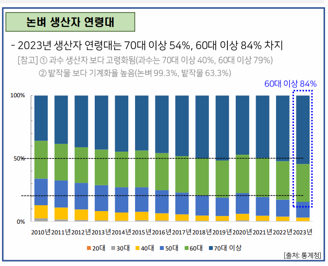 또한 젊은 세대의 농업 참여가 감소하면서 인력 부족 문제도 심화되고 있다. 이는 향후 쌀 생산량 감소로 이어질 수 있다.
