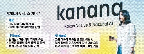카나나 브랜드는 사내 AI 전담 조직 명칭을 비롯해 카카오가 개발하는 주요 AI 모델과 신규 서비스 이름 등에 두루 사용된다. 정 대표는 "댜앙한 콘텍스트(맥락)를 이해하고 그 속에서 개인화된 결과 값을 낼 수 있는 것이 카카오가 생각하는 초개인화된 AI"라고 말했다. 단순히 사용자가 입력한 텍스트나 음성에 대해 기계적으로 답변만 하는 챗봇 같은 기존 AI 서비스에서 한발 더 나아가 과거 대화까지 분석해 이용자에게 가장 적합한 맞춤형 답변을 내놓는 'AI 메이트(친구)'를 만들겠다는 것이다.