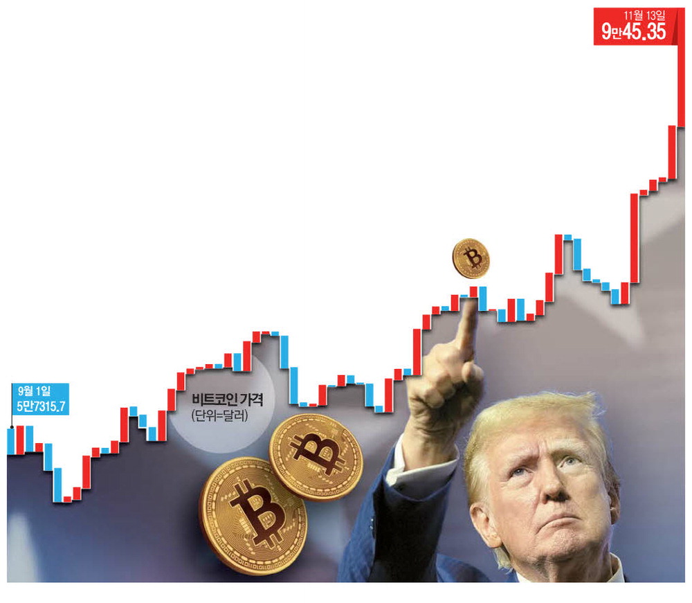 '가상자산 대통령'을 자처하는 도널드 트럼프 전 미국 대통령의 당선 기대감에 선거 전부터 시작된 '트럼프 트레이드'의 영향이다.