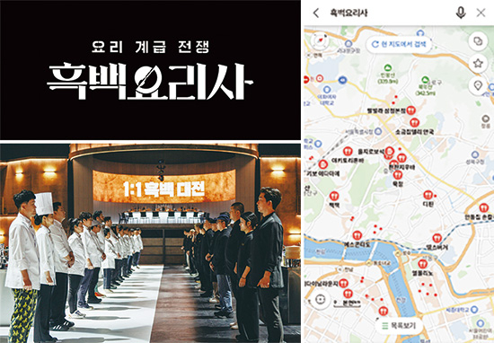 대한민국 요식업계가 들끓고 있다. 이게 다 ‘흑백요리사’ 탓이다. 프로그램에 출연했던 셰프들의 레스토랑은 예약 경쟁에 불이 붙었다. 시청자에게는 약 100개의 가봤거나,꼭 가봐야 할 음식점 리스트가 생긴 셈이다. 네이버 지도 앱은 이제 검색창에 ‘흑백요리사’를 넣으면 출연한 요리사들의 점포를 바로 확인할 수 있게 했다.