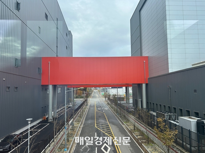 공장에서 생산되는 제품들이 화물 연결 컨베이어를 통해 공장에서 바로 물류센터 창고로 이동한다. [변덕호 기자] FBH는 국내에서 유일하게 공장과 물류센터가 하나로 연결돼 있다. 공장에서 생산되는 제품들이 화물 연결 컨베이어를 통해 공장에서 바로 물류센터 창고로 이동한다. 즉 중간유통 과정 없이 고객에게 바로 배송되는 시스템을 구축한 것이다. 또한 아이스팩,드라이아이스,완충재,보충재 등 포장도 전부 자체 생산한다. 포장재는 상온,고온,저온 상품을 한번에 담을 수 있도록 디자인 됐다.하림 관계자는 “수많은 유통 과정을 생략해 물류비를 절약할 수 있고 포장 쓰레기도 덜 발생해서 친환경적”이라고 말했다.오후에는 하림 본사로 이동해 도계·육가공 공정을 볼 수 있는 ‘치킨로드’를 진행했다.하림은 닭고기의 신선도를 높이고 동물복지를 실현하기 위해 ‘가스스터닝’을 통한 방혈,탕적,탈모,에어칠링 등 8가지 공정을 거치고 있다.특히 가스스터닝의 경우 이산화탄소(co2)를 주입해 도계 전 닭들을 잠들게 해 스트레스를 줄여준다. 또한 가스스터닝으로 잠든 닭들의 혈액은 쉽게 응고되지 않아 깔끔하게 방혈이 되어 신선도를 향상한다.에어칠링은 차가운 공기를 이용해 41도의 닭 온도를 2도까지 낮추는 공법이다. 타사에서는 얼음물에 담가 온도를 떨어뜨리는 ‘워터칠링’을 사용하는데 이는 닭이 물을 흡수해 맛이 변형될 수 있고,세균 오염에 집단 노출될 가능성이 크다.