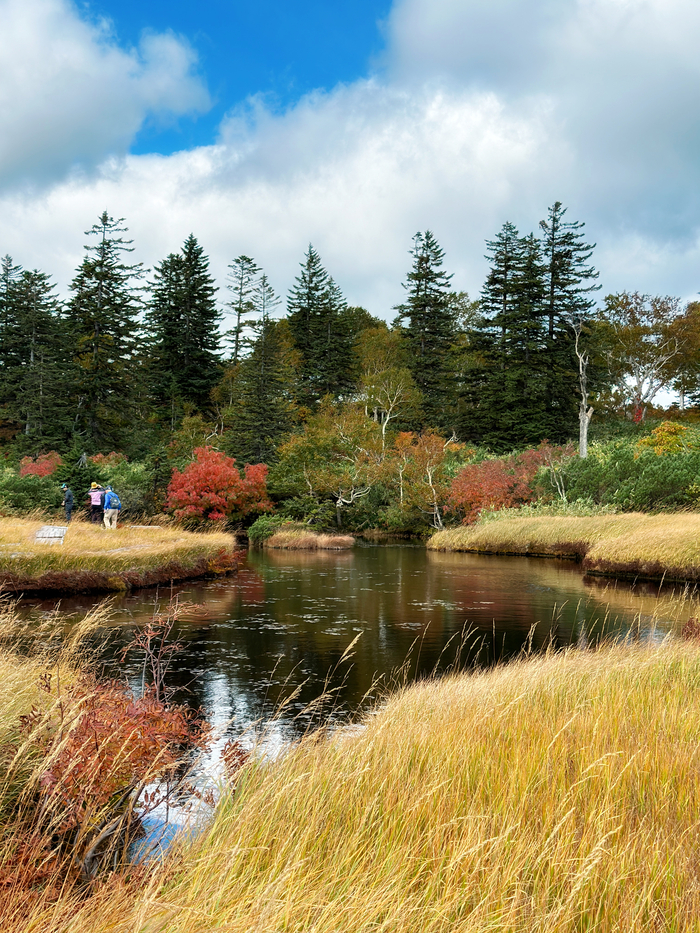 ‘신선의 늪’이란 뜻의 신센누마 산책 코스 / 사진=권효정 여행+ 기자 단풍이 물든 가을,고요한 늪지의 수면은 거울처럼 하늘을 담아낸다. 마치 두 개의 하늘이 맞닿은 듯한 착각이 들 정도. 옛 설화에 따르면 신선들이 머물렀다는 전설 때문에 붙여진 이름답게,방문객들은 신비로운 분위기에 푹 빠져든다. 5~6월 호수의 눈이 녹으면 용의 눈동자를 닮았다고 해서 ‘용의 눈’으로도 불린다. 가을에는 신갈나무가 늪을 에워싸 수면에 그림자를 드리운다.
