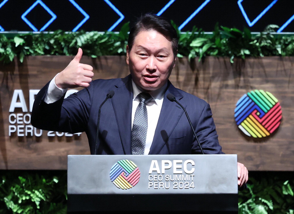최태원 대한상공회의소 회장(사진)이 내년 경주에서 열리는 'APEC CEO 서밋'을 앞두고 의장직을 넘겨받았다. 지난 15일(현지시간) 최 회장은 페루 리마 국립대극장에서 열린 '2024 APEC CEO 서밋'에서 페르난도 사발라 의장으로부터 의사봉을 전달받고 내년 의장 자격을 인수했다.