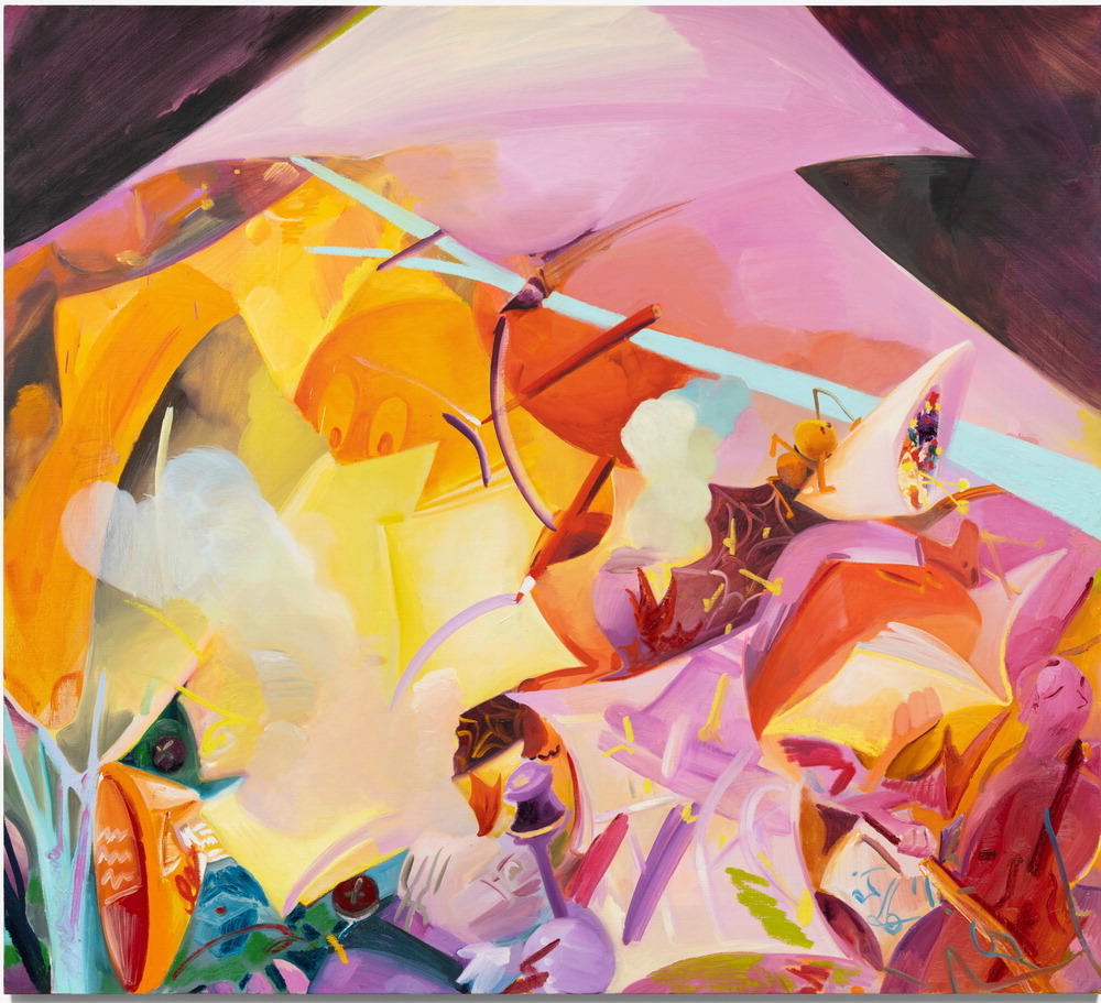이진한의 총천연색 캔버스에선 상단 좌우측을 유심히 보게 된다. 물감이 좌우 사선 방향으로 배치된,다소 어두운 영역 말이다. 그건 마치 심연의 커튼,무대의 장막 같다. 감상자는 현실 뒤 한 겹을 열고 캔버스 속으로 들어가 작가의 내면 속 풍경을 응시하게 된다. 그곳에 축적된 잔여물이 온통 '이야기'로 가득하기 때문이다.