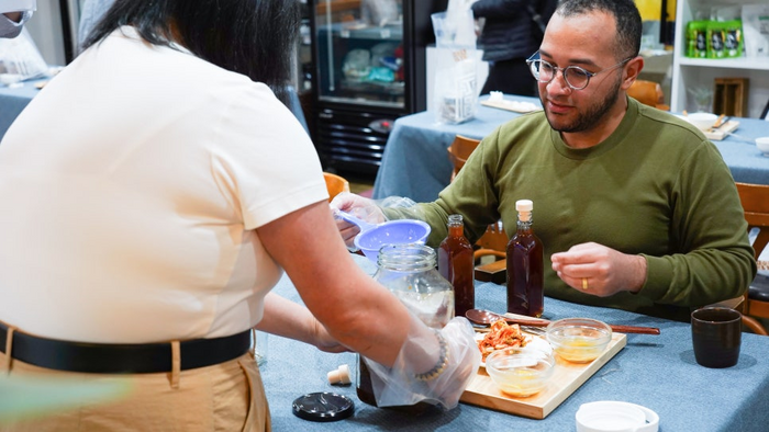 이렇게 가른 간장과 된장은 용기에 담아 이름을 적어 집에 가져갈 수 있다. 이미 메주를 오래 숙성했기 때문에 바로 먹어도 되지만 2~3개월 숙성하면 더욱 깊은 맛이 난다. 이후 간장 김치와 된장국 요리 체험도 진행한다.
