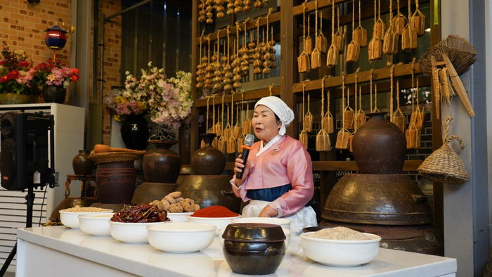 강순옥 명인/사진=류한나래 여행+ PD 순창장본가의 명인본가체험장으로 들어서면 메주가 잔뜩 매달린 벽과 크고 작은 옹기들이 반겨준다. 준비된 앞치마와 두건을 두르기만 해도 벌써 명인의 수제자가 된 기분이 들어 마음이 들뜬다.