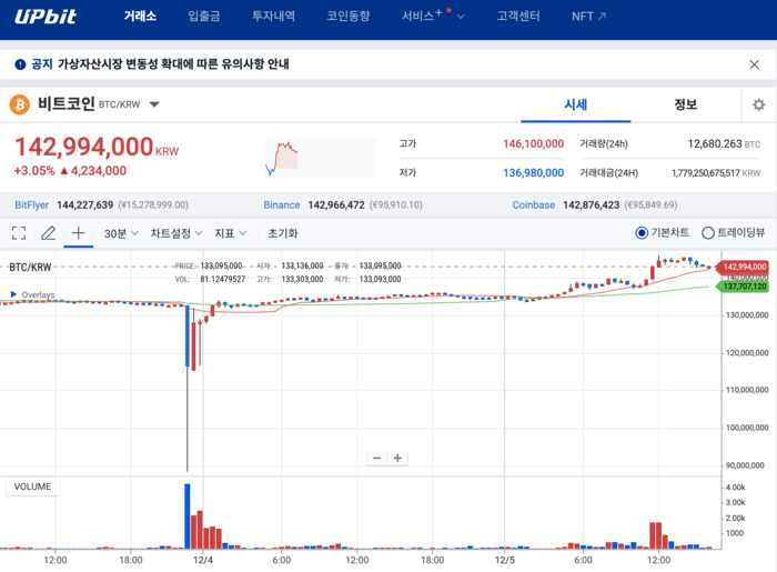 • 계엄령 해제 이후 비트코인 거래량 폭증,업비트 거래대금 2조3000억 원 기록