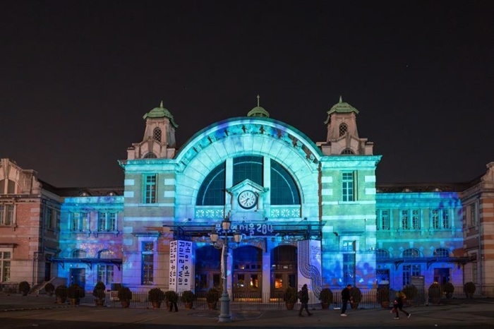 < 김원종,전도희 작가의 작품 ‘서울2050: 기후제어시스템’이 문화역서울284 광장 앞 외벽에 매핑되고 있다 > 문화체육관광부(장관 유인촌)와 (재)예술경영지원센터(대표 김장호)는 한국공예·디자인문화진흥원(원장 장동광)과 협력하여 12월 10일부터 15일까지 서울시 중구 소재 문화역서울284(옛 서울역) 앞 광장에서 혁신적인 프로젝션 매핑(Projection Mapping) 프로젝트 ‘수퍼 파사드 테스트: 실험적 발견의 새로운 연결고리’를 선보인다.