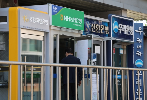 서울 시내에 설치된 주요 은행들의 현금인출기. [사진 출처 = 연합뉴스] 한국은행이 지난달 기준금리를 낮춘 후 은행권 수신금리 줄하락이 다시 시작됐다. 하지만 예·적금 잔액은 오히려 증가세를 보이고 있어 그 배경에 이목이 집중된다.