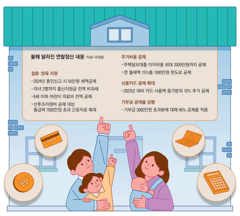 올해도 세법 개정으로 다양한 공제 혜택이 추가되거나 확대됐다. 혼인신고·출산지원금 등 결혼·양육 관련 세제 혜택이 추가됐고,주택청약저축 납입액에 대한 공제액도 늘어나는 만큼 국세청이 안내하는 절세 포인트를 꼼꼼히 따져보는 게 중요하다.