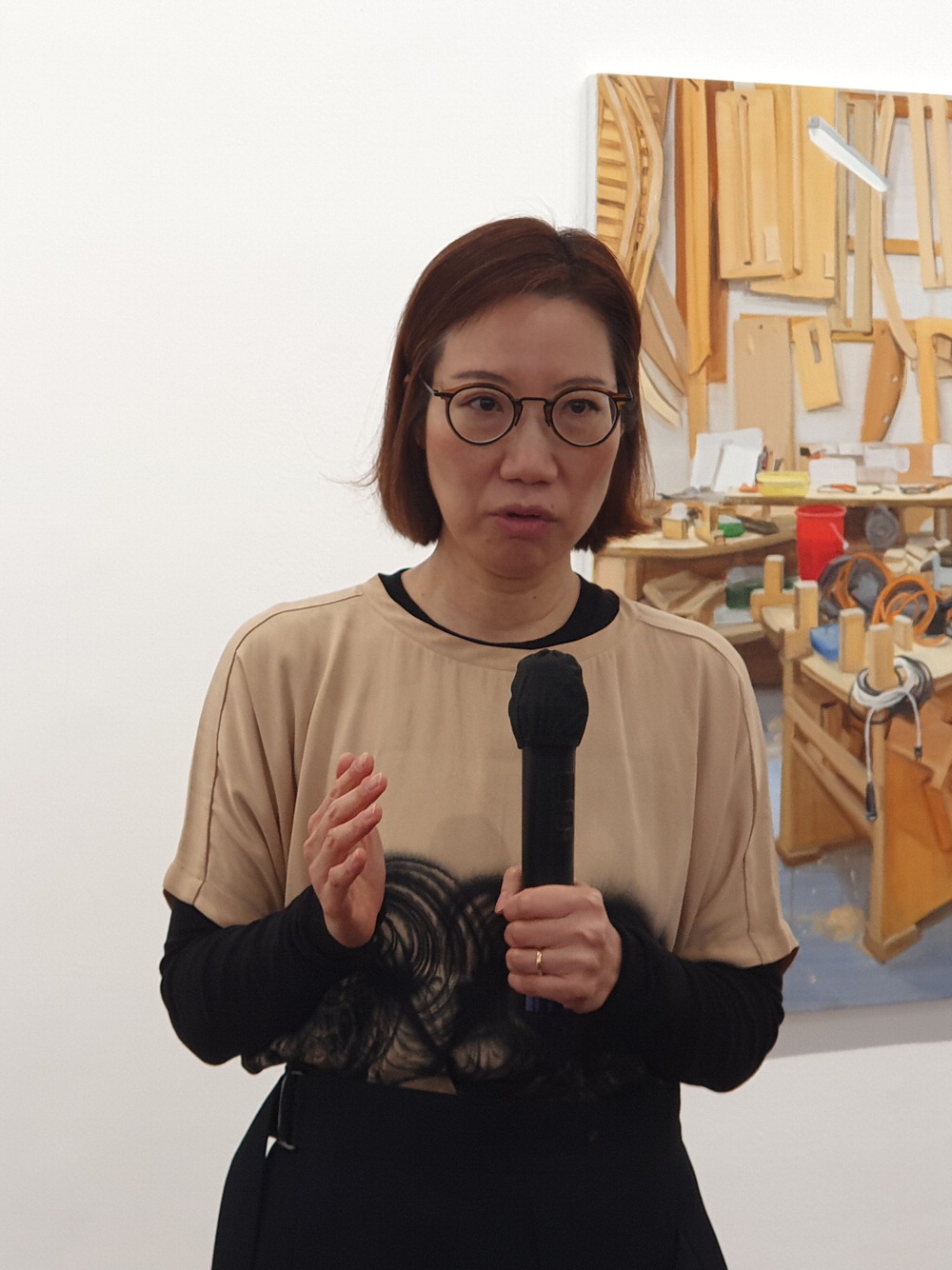 최근 서울 소격동 국제갤러리 기자간담회에서 만난 박진아 작가(사진)는 "미술관,키친,피아노 공장 등 '백스테이지'에서 일하는 사람들을 그렸다. 그들은 '관계자 외 출입금지(staff only)'라고 적힌 푯말 뒤에 가려져 있지만 그들이 있는 곳은 늘 긴장감이 흐르는 공간"이라고 설명했다.
