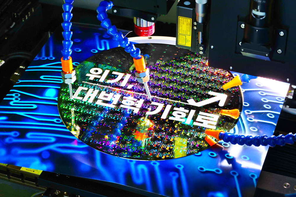 계엄,탄핵,대형 참사 등으로 얼룩진 2024년이 가고 2025년 새해를 맞은 대한민국이 다시 희망을 품고 도약한다. 새해 내수,수출,투자는 물론 성장 지표마저 비관론이 나오고 있지만 외환·금융·코로나19 위기를 슬기롭게 돌파했던 한국 경제는 위기를 기회로 만드는 대변혁에 나선다. 31일 대전 유성구 나노종합기술원의 팹 시설에서 매일경제신문의 2025년 신년 캐치프레이즈인 '위기,대변혁 기회로'가 반도체 웨이퍼 위에 새겨지고 있다. 한주형 기자
