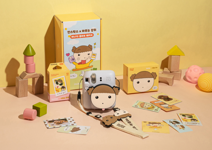 한국후지필름,네이버웹툰 마루는 강쥐와 협업 진행 / 사진=한국후지필름 ‘마루는 강쥐’ 협업 제품은 카카오톡 선물하기에서 단독으로 판매한다. 먼저 미니12 카메라 패키지는 ‘미니12 카메라 5종 중 택1’ ‘렌즈 덮개 & 끈’ ‘필름 10매’ ‘프레임 스티커 10종 1세트’ ‘포토카드 10종 1세트’ ‘빅데코스티커 3종 1세트’로 구성한다.