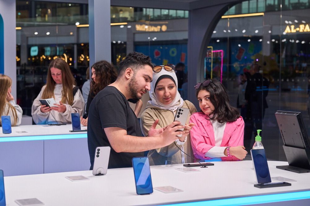 삼성전자가 7일부터 갤럭시 S25 시리즈를 한국,미국,영국,인도 등을 시작으로 120여 개국에 순차 출시한다. 갤럭시 S25 시리즈 출시에 맞춰 구글 제미나이를 사용할 수 있는 언어가 총 46개로 확대된다. 사진은 두바이의 더 베이 페스티벌 시티 몰(The Bay Festival City Mall)에 위치한 갤럭시 익스피리언스 스페이스에서 고객들이 갤럭시 S25 제품을 체험하는 모습. 삼성전자