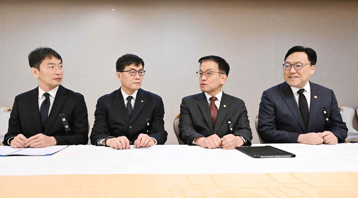 최상목 대통령 권한대행 부총리 겸 기획재정부 장관이 지난 1월3일 오전 정부서울청사에서 거시경제·금융현안간담회를 하고 있다. 왼쪽부터 이복현 금감원장,이창용 한국은행 총재,최 권한대행,김병환 금융위원장. [연합뉴스] 국제통화기금(IMF)이 한국 경제의 하방 위험이 강하다고 평가했다. IMF는 정치적 불확실성이 길어질 경우 투자·소비 심리에 악영향을 주고 금융 변동성이 확대될 것이라고 경고했다. 아울러 위험이 현실화할 경우 추가적인 재정 지원도 고려할 수 있다고 했다. 사실상 추가경정예산(추경) 편성을 권고한 것으로 풀이된다.