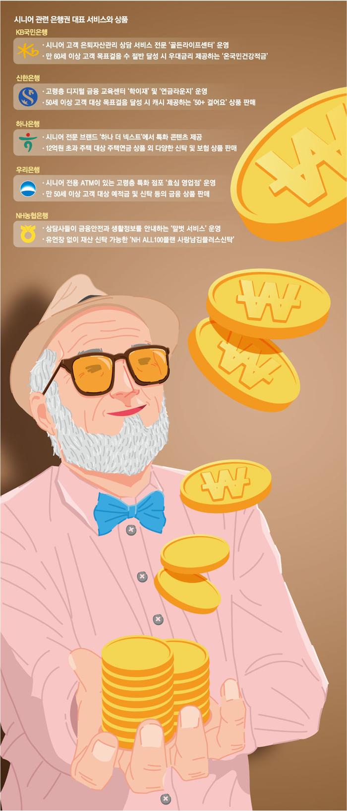 지난해 말을 기준으로 한국이 65세 인구의 비중이 20%를 넘는 초고령사회에 진입했다. 은퇴 이후에도 경제력과 젊은이 못지 않은 체력을 바탕으로 활발한 사회활동과 소비를 하는 고령층이 늘면서 이들을 겨냥한 각종 금융상품도 봇물을 이루고 있다.