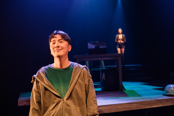 암울한 현실에서 탈출을 꿈꾸는 청춘의 모습을 그린 연극 ‘저수지의 인어’. 한국문화예술위원회 ‘저수지의 인어’는 무대 구성이 돋보이는 작품이다. 무대 단상 위 책상에 앉아 철수가 노트북으로 글을 쓰면 단상 아래에 인어들이 등장한다. 아버지(유병훈)가 철수가 쓴 글을 읽을 때도 인어들은 나타나고,아버지는 단상 위에서 그들을 벌이는 우스꽝스러운 행각을 내려다본다.
