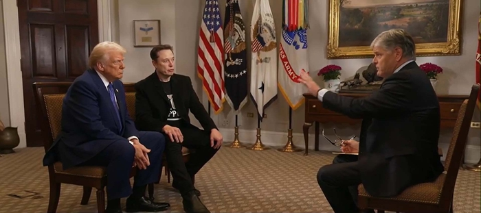 도널드 트럼프 미국 대통령과 일론 머스크 정부효율부(DOGE) 수장이 폭스(Fox)뉴스와 인터뷰하고 있는 모습.