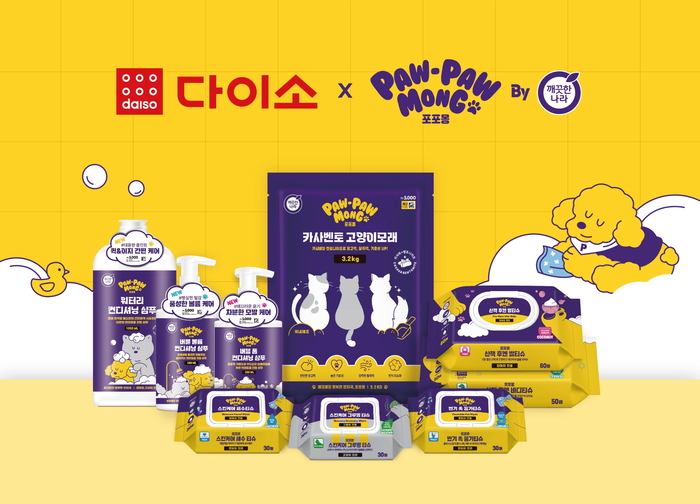 깨끗한나라 포포몽은 반려동물의 행복한 삶을 지원하고자 출시한 반려동물 전용 브랜드이다. 지난해 말 다이소 전용으로 ▲반려동물 전용 펫티슈 5종(산책 후엔 발티슈·산책 후엔 바디티슈·스킨케어 세수티슈·스킨케어 그루밍 티슈·변기 쏙 응가티슈) ▲강아지∙고양이 겸용 샴푸 3종(버블 폼 컨디셔닝 샴푸·버블 볼륨 컨디셔닝 샴푸·워터리 컨디셔닝 샴푸) ▲고양이 모래 1종(카사벤토 고양이모래)을 비롯해 신제품 9종을 출시했다.