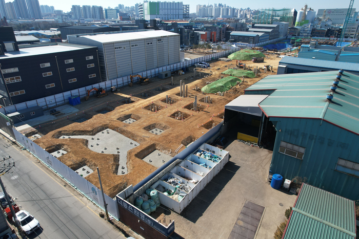 24일 경기 고양시 일산서구 덕이동 데이터센터 건설 현장. [이승환 기자] 미래전파공학연구원이 데이터센터 주변과 인근 관심 시설 29개 지점에서 전자파를 측정한 결과 산업통상자원부가 전기설비기술 기준으로 정한 인체보호 기준(833mG)의 1.5% 수준으로 나타났다. 이는 전기밥솥보다 낮은 수준이다.
