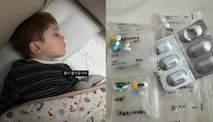 장염에 걸려 아파하는 젠과 약봉지. [사진출처 = 사유리 인스타그램] 방송인 사유리가 안타까운 근황을 전했다.