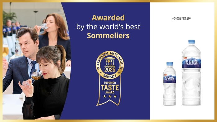 ‘동원샘물’ 국제식음료품평회 최고등급 ‘3스타’ 수상. [사진 출처 = 동원F&B] 동원F&B는 먹는샘물 브랜드 ‘동원샘물’이 ‘2025 국제식음료품평회’에서 국제 우수 미각상 가운데 최고 등급인 ‘3 스타’(3 star)를 받았다고 26일 밝혔다.