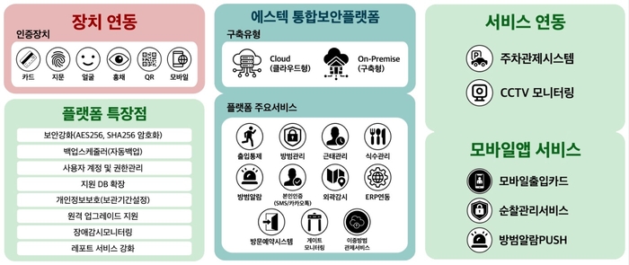 에스텍 통합 보안 솔루션 구성도 종합 안심솔루션 전문 기업 에스텍시스템(대표 이병화)이 기존 보안 시스템과 유연하게 연동되는 차세대 통합 보안 솔루션 ‘STSP(S-Tec Security Platform)’와 ‘S-Works’를 출시했다고 27일 밝혔다.