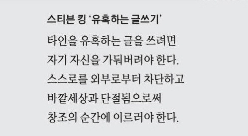 "정말 필요한 것은 딱 하나뿐이다. 그것은 바로,하나의 문이다. 여러분이 글을 쓰려면 이 문을 닫을 용의가 있어야 한다."