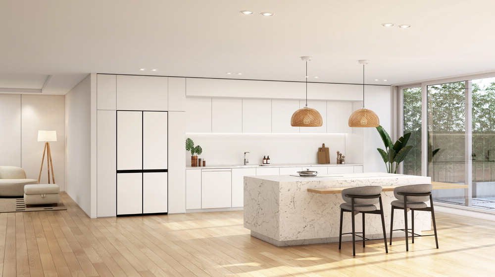 삼성전자가 기존 장에 좌우 4㎜ 여유만 있어도 빌트인처럼 설치할 수 있는 '키친핏 맥스' 디자인을 적용한 비스포크 냉장고 신제품을 28일 출시했다. 신제품은 냉장고가 앞으로 튀어나오지 않고,문을 90도 이상 활짝 여는 기술이 적용됐다. 삼성전자