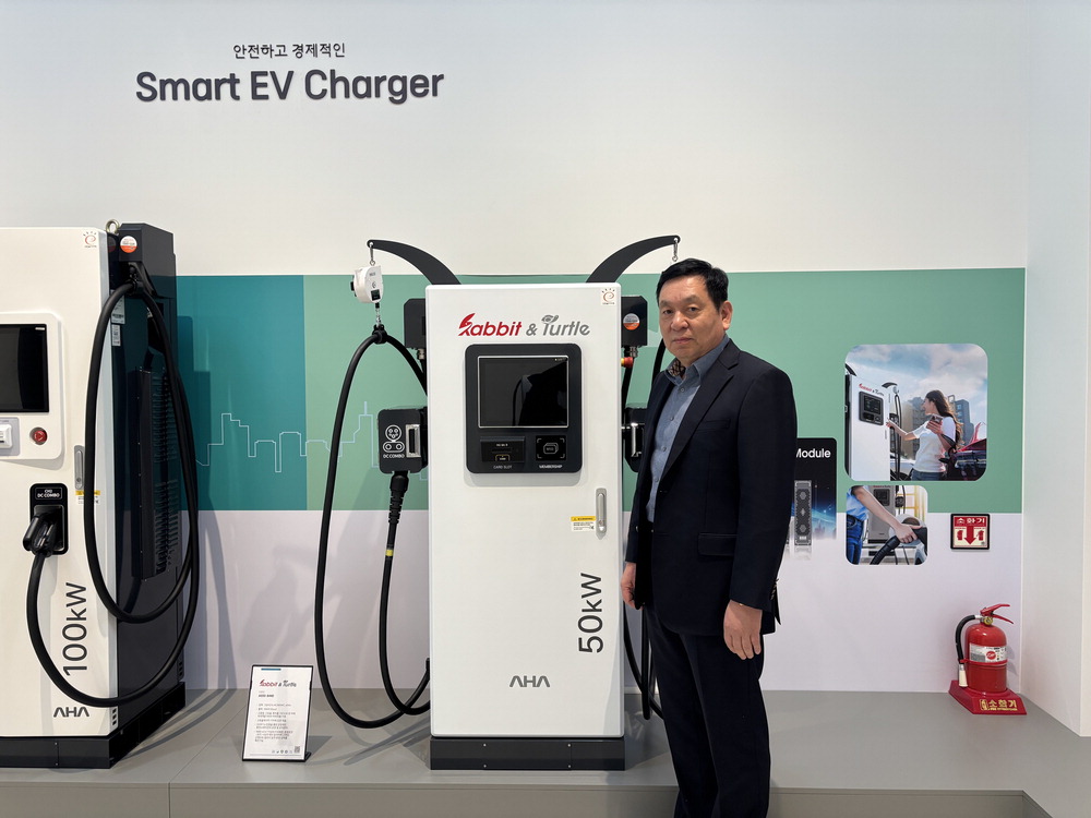 구기도 아하 대표가 전기차 고속충전기 '래빗&터틀'을 소개하고 있다. 이윤식 기자