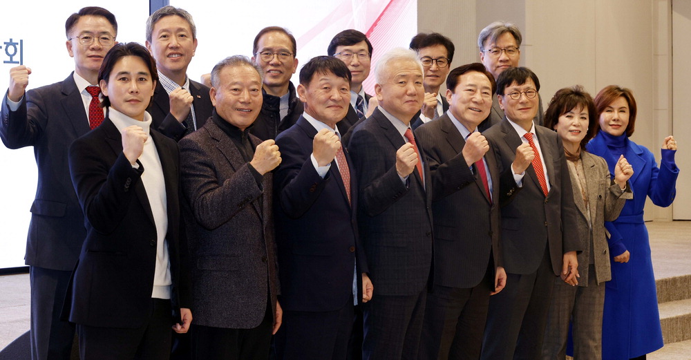 세계한상대회 주최·주관 기관 관계자들이 서울 중소기업DMC타워에서 열린 세계한상대회 킥오프 회의에서 기념촬영을 하고 있다. 앞줄 왼쪽부터 정태우 세계한상대회 홍보대사,황병구 미주한상총연 명예회장,이경철 미주한상총연 회장,이상덕 재외동포청장,김기문 중소기업중앙회 회장,손현덕 매일경제 대표,케이 전 미주한상총연 수석부회장,김미경 미주한상총연 글로벌사업본부장. 김호영 기자