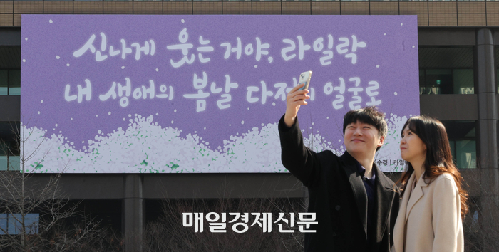 6일 교보생명은 허수경 시인(1964~2018)의 시 ‘라일락’에서 가져온 광화문글판 봄편을 하고아름다운 문구로 사계절 변화를 알려주는 광화문글판이 봄을 맞아 새롭게 단장했다.