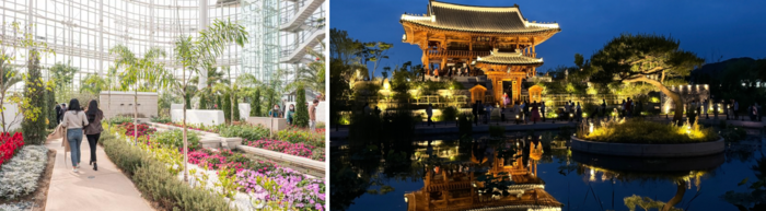 내부에 희귀특산식물전시온실·한국전통정원·사계절 온실·분재원 등 전시원이 있다.