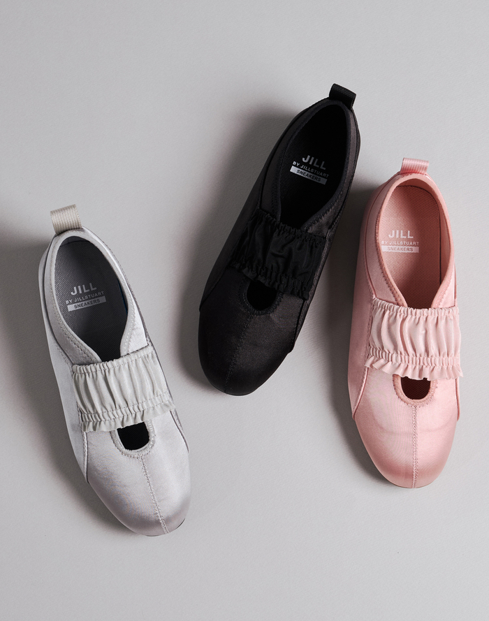 대표 제품으로는 ‘셔링 슬립온’이 있다. 편안한 슬립온 디자인에 러블리한 셔링 디테일을 더해 발레코어 무드를 완성했다. 또한 발레리나 슈즈에서 영감을 받은 리본 레이스업 디테일과 벨크로 스트랩이 조화를 이루는 트렌디한 스니커즈도 출시됐다.