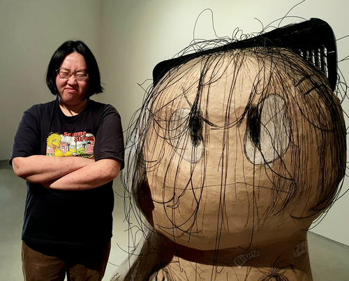 서울 용산구 P21 갤러리에서 만난 신민 작가. 올해 아트바젤 홍콩에선 한국 작가의 대형 설치작품이 큰 관심을 얻었다. 서비스직 노동현장의 여성들의 머리카락을 주제 삼은 작품 ‘유주얼 서스펙트’다.